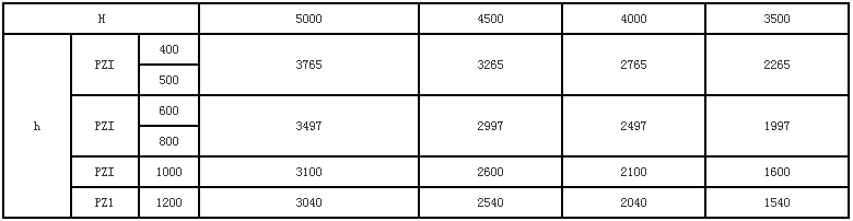 1、水泵房底板標(biāo)高和水倉(cāng)(或配水巷)入口標(biāo)高之高差H與連接桿長(zhǎng)度h值,本設(shè)計(jì)考慮四種情況,如下表所示:(單位:毫米)